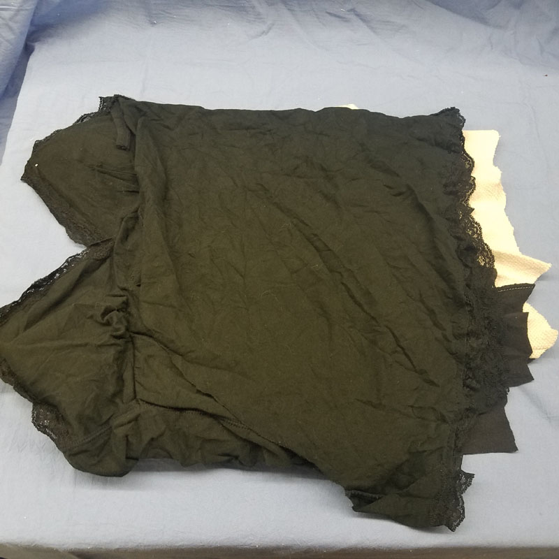 Very soft, non-abrasive & absorbant. Mostly shirting. Mostly cotton. Free from buttons, zippers, & snaps.
